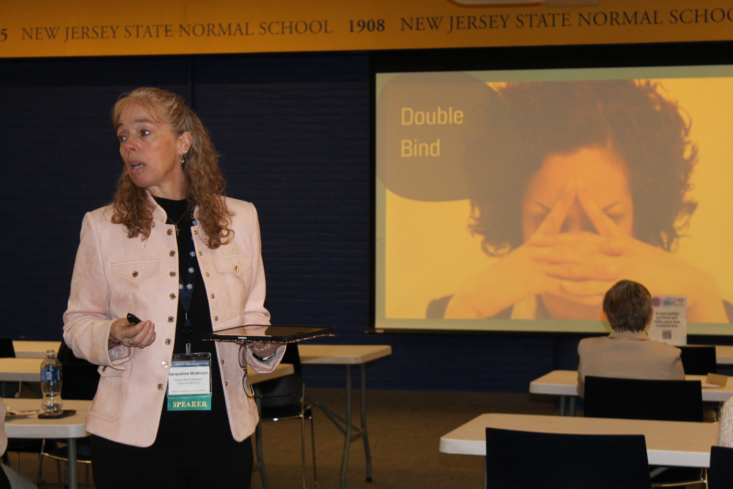 With the theme “Rise and Thrive,” the conference opened with an energetic and informative keynote address by Dr. Kimberley Markus, executive coach for the NJSBA Lead program and former New Jersey Commissioner of Education. Titled “Not a Straight Line: Charting Your Leadership Path with Confidence and Community,” Dr. Markus shared the journey she took to find her voice and the importance that mentorship played in her development. Growing up shy and lacking confidence, Dr. Markus initially leaned into others’ belief in her. A member of her middle school marching band, her marching band teacher saw her potential and sent her to Leadership Camp. Despite being apprehensive and insecure about attending, Dr. Markus returned from camp with a new level of confidence and became the drum major, leading her high school marching band for all four years.