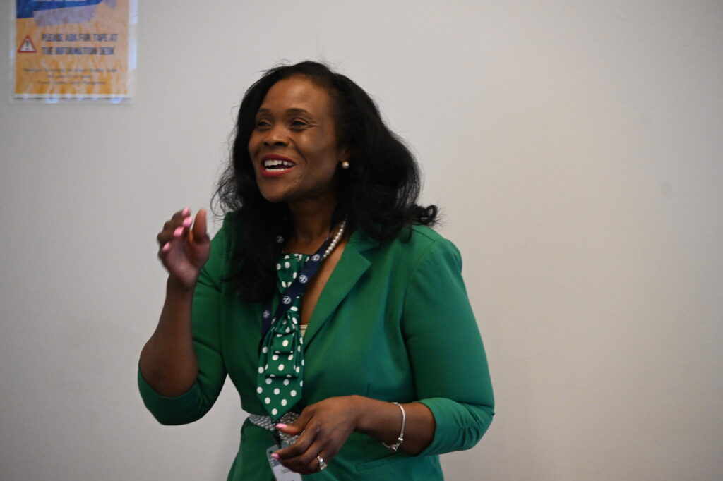 The conference featured three blocks of breakout sessions with 17 options. One session, “Five Keys to Rise and SHINE,” led by Salem County School District Assistant Superintendent of Teaching, Learning, and Innovation Fatihah Abdur-Rahman, discussed the SHINE framework, an acronym for Stack your bench, Huddle often, Invest in you, the power of Now, and Evidence of impact. This philosophy offers five practical tips for women leaders to build equity, navigate barriers and lead with clarity and confidence. Another session, “Empowerment and Boundary-Setting,” led by Grace Flagler of Younity, discussed ways for women to empower themselves in personal and professional settings, where attendees discussed how to define and set boundaries.