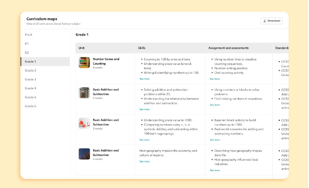 Picture a curriculum team staring at a list of 200 math standards. Which grade tackles fractions? When do students encounter algebraic thinking? There are overlaps—third-graders work with basic multiplication while fourth-graders dive deeper into multi-digit problems. The team has to make sense of this progression and organize it into manageable chunks—maybe eight units per year, with five standards clustered in this unit, seven in that one.