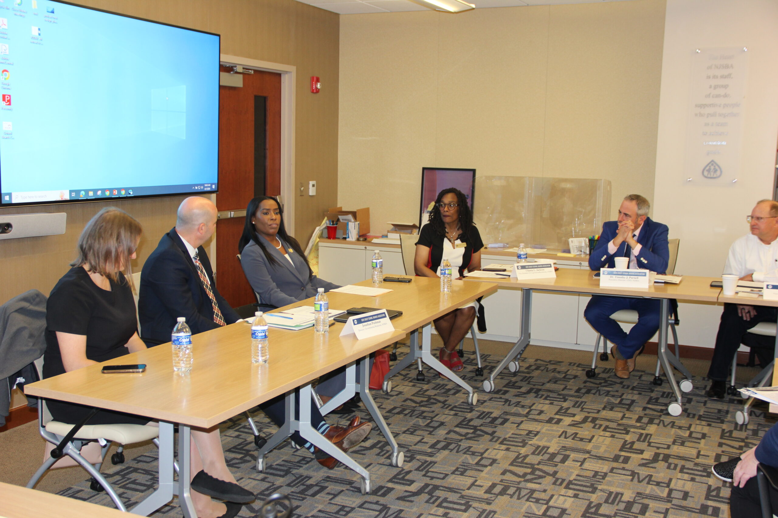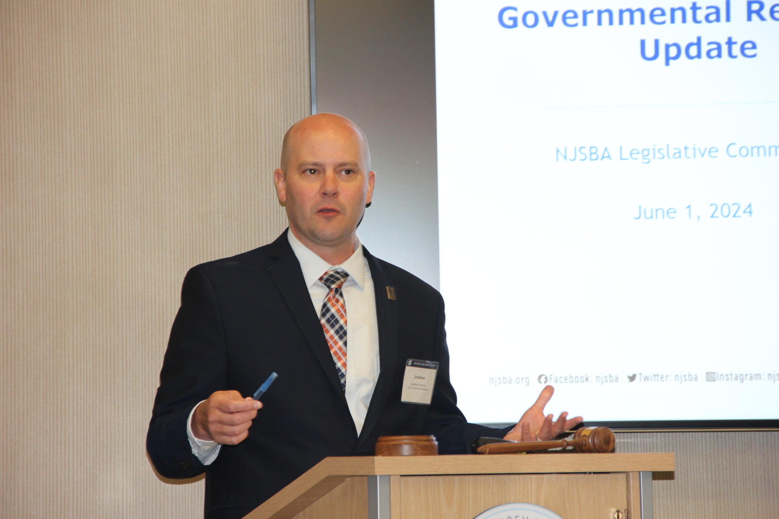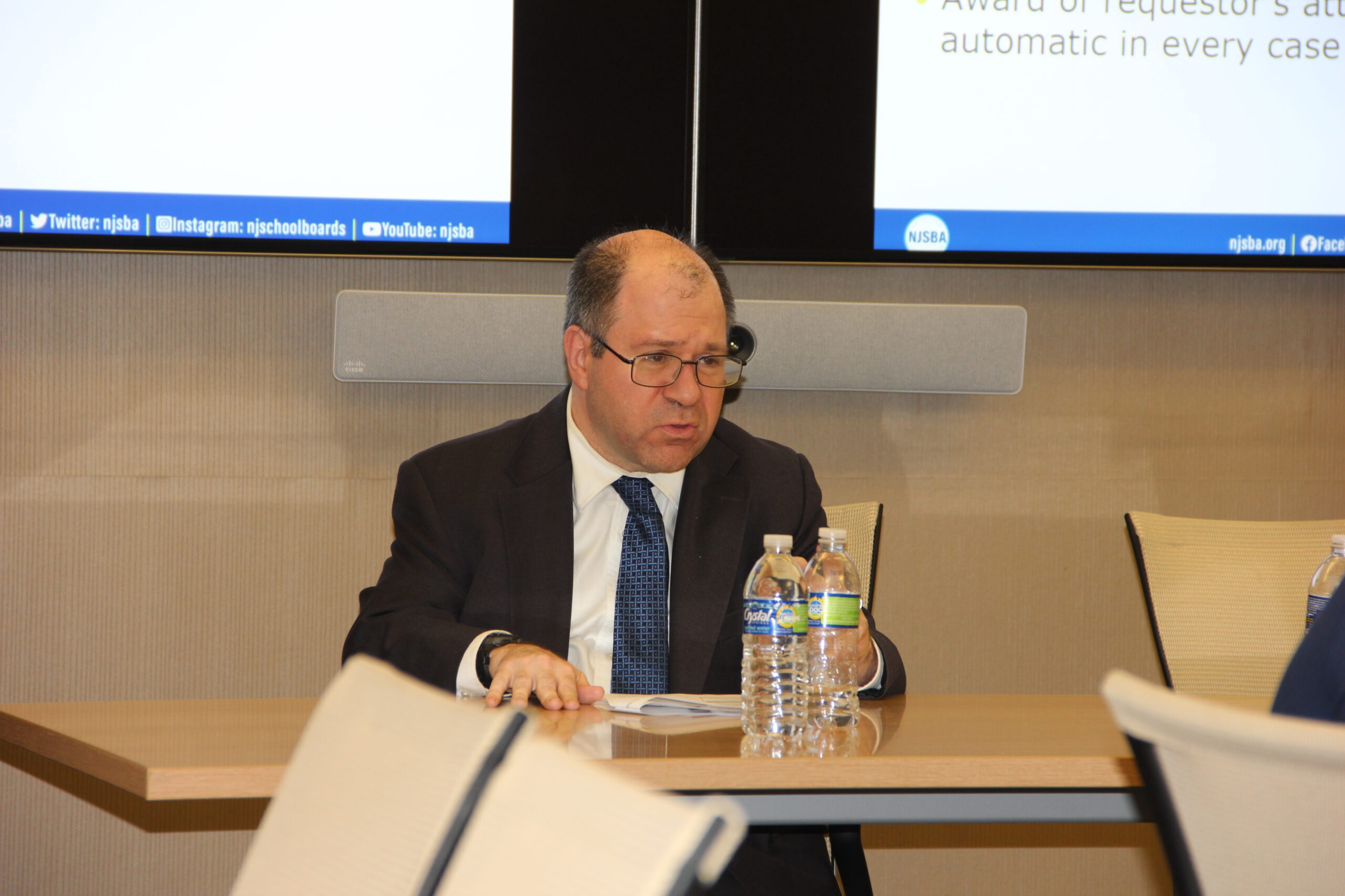 The rest of the meeting was dedicated to a governmental relations update provided by Jonathan Pushman, the NJSBA’s director of governmental relations; and John Burns, the NJSBA’s longtime senior legislative counsel.